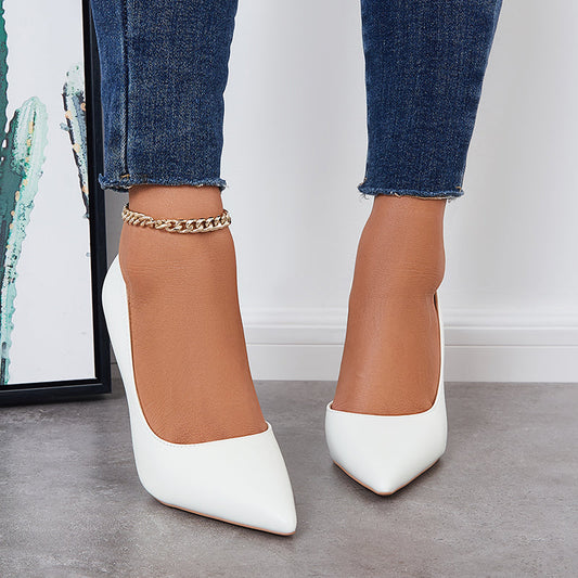 Solid Stilettos Dress Shoes Pointed Toe High Heel Side Cut Pumps