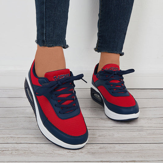 Women Air Cushion Mesh Sneakers Lace Up Platform Walking Shoes