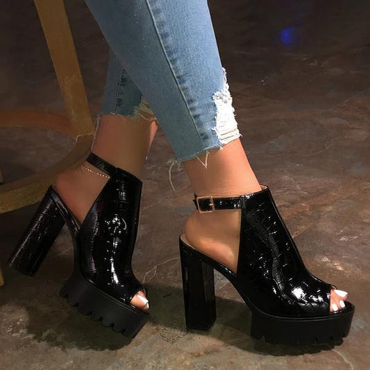 Kimemoda Womens Peep Toe Platform Heels Chunky Block Heel Slingback Sandals