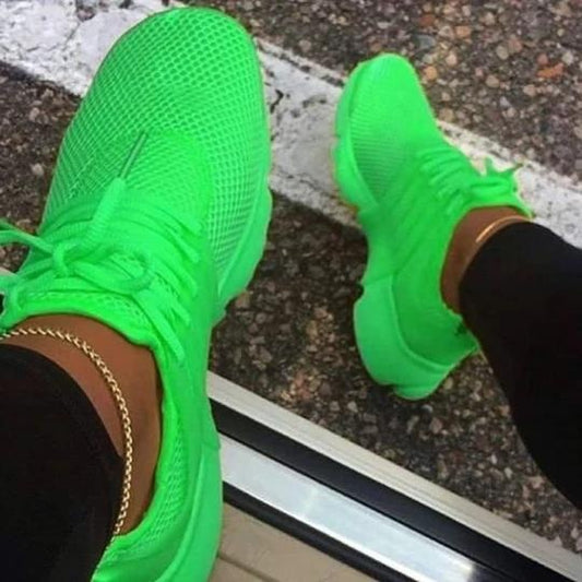 Kimemoda Breathable Solid Color Elastic Cuff Lace-up Comfortable Sneakers
