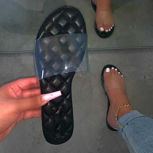 Kimemoda Womens Clear Strap Slides Slip on Flat Sandals