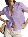 Womens Puff Sleeve Shirts Peter Pan Collar Button Down Cotton Blouse Casual Summer Textured Tops