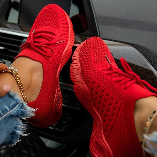 Kimemoda Womens All Season Colorblock Lace-Up Breathable Knit Casual Sneakers
