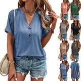 Women's Tops Solid Color Buttons Fashionable Short Sleeves