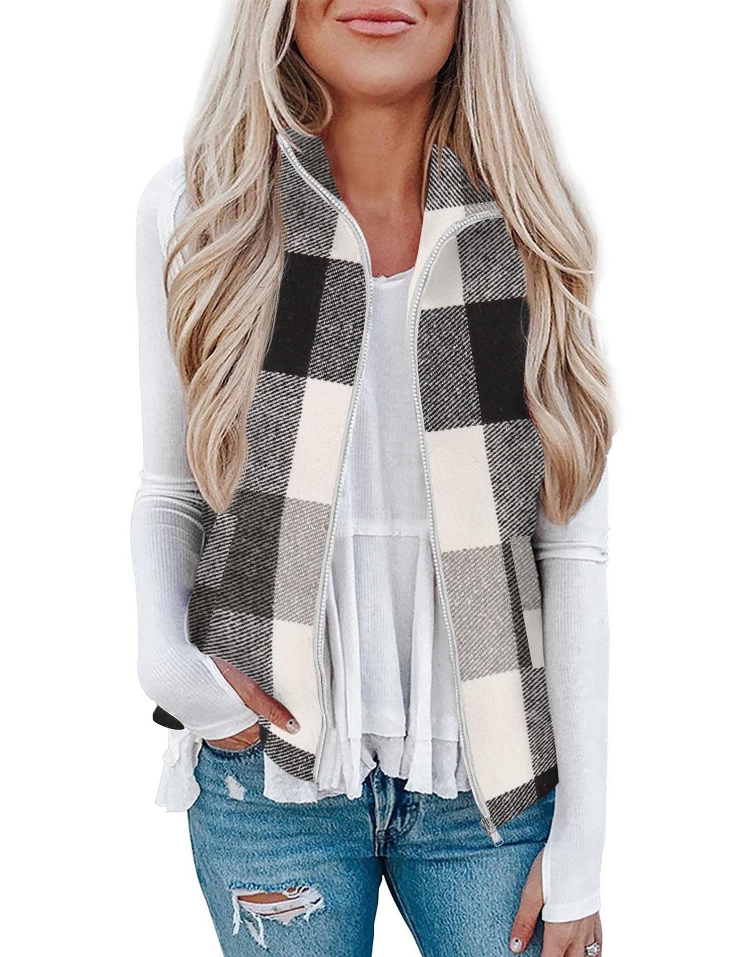 Women’s Christmas Fall/Winter Plaid Check Sleeveless Zipper Vest