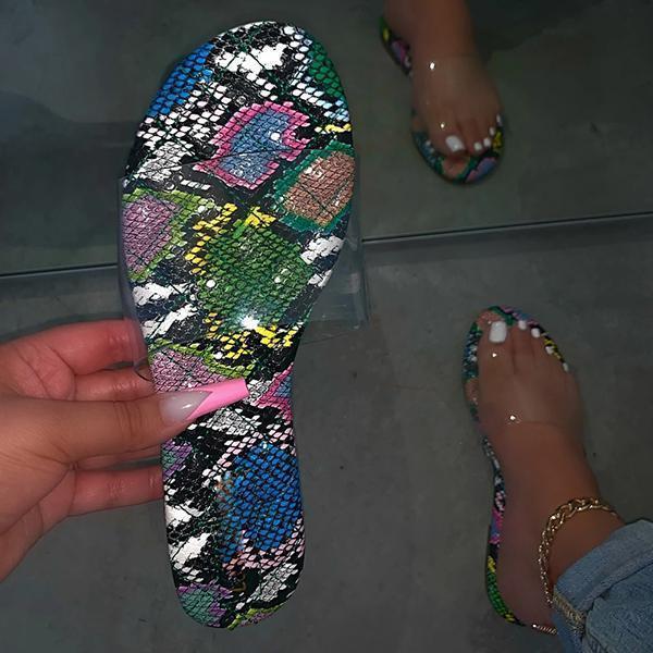 Kimemoda Womens Clear Strap Slides Slip on Flat Sandals