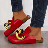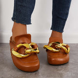 Kimemoda Flat Slip-on Backless Mule Slide Metal Chain Slippers
